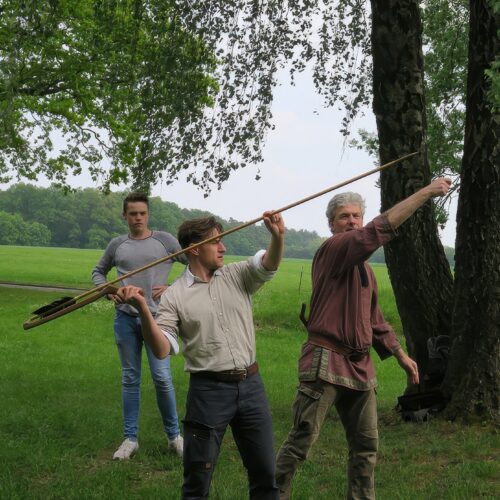 Die „Zeitreisenden“ erleben die jüngere Altsteinzeit hautnah. Es ist ein Erlebnis, die eleganten Speere durch die Luft fliegen zu sehen.